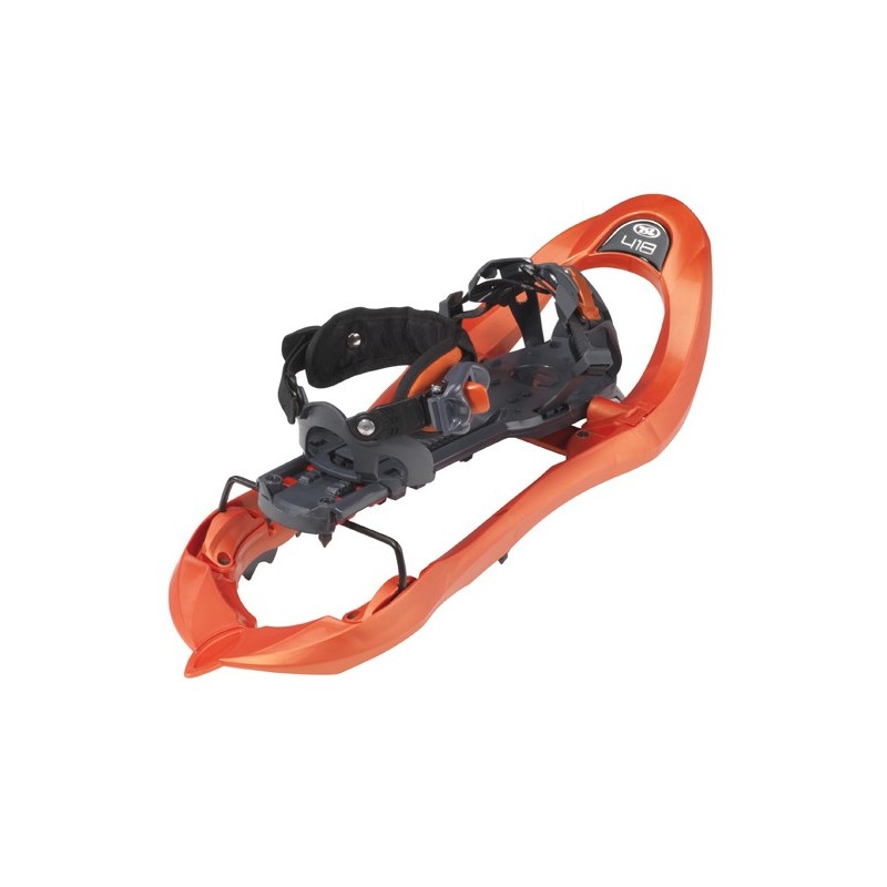 Los modelos 418 y 438 de TSL tienen un alza denominada Up&Down (Patente TSL) que permite reducir los efectos de pendiente, ya sea en subida o en bajada (la parte trasera de la fijación pasa por debajo de la raqueta, a fin de conservar el pie en plano, evitando que el pie se apoye en la puntera de la bota). Esta fijación también permite calzarse la raqueta rápidamente de forma precisa ya que incorpora un sistema de memorización de la talla de la bota. Por último, y no por ello meos importante, el crampón que incorpora la raqueta es espectacular gracias a los 8 clavos que incorpora, a la uña delantera y a los grips situados debajo de cada pie lo que dotan a esta raqueta de un control total, una facilidad de manejo brutal y una experiencia increible de la montaña sin tener que preocuparte por el funcionamiento de las raquetas de nieve, algo por lo que no deberías preocuparte en una buena raqueta de nieve.