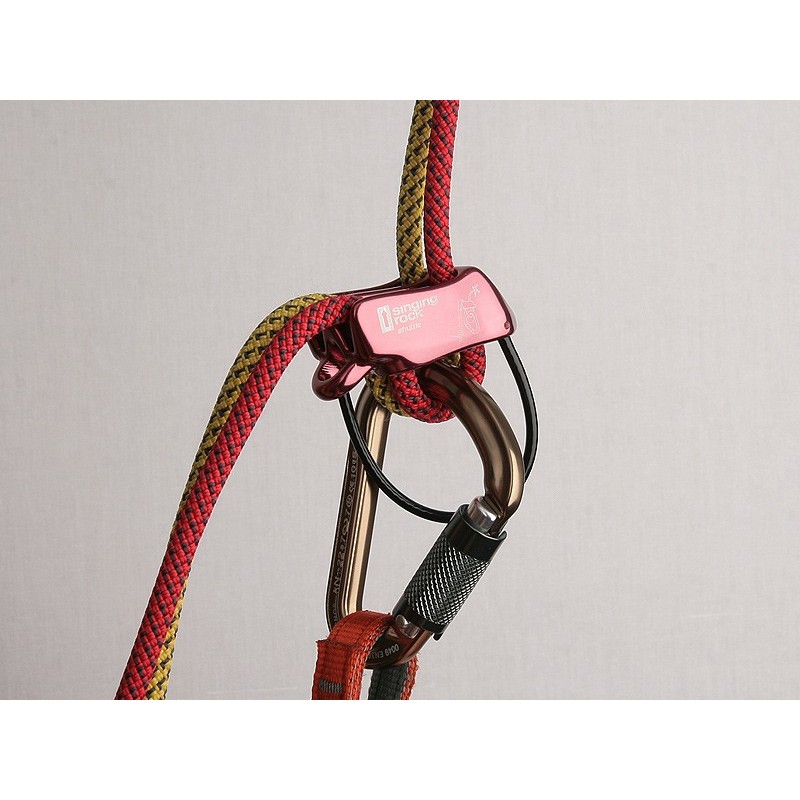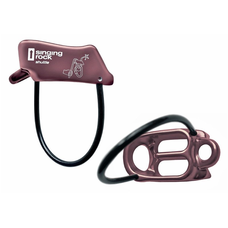 Este dispositivo de aseguramiento Singing Rock Shuttle sirve para cuerdas simples, gemelas y dobles.